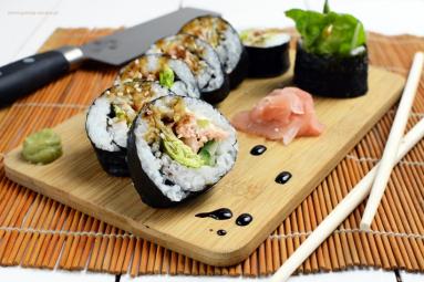 Po kilku miesiącach przerwy zabrałam się w końcu za zrobienie nowego posta, oraz wstawienie nowego przepisu - domowego sushi. Padło na maki z pieczonym łososiem, ponieważ na co dzień trudno kupić extra-świeżą rybę z dobrego źródła, którą można jeść na surowo. Takie sushi z pieczoną rybą mogą jeść dzieci i kobiety w ciąży.